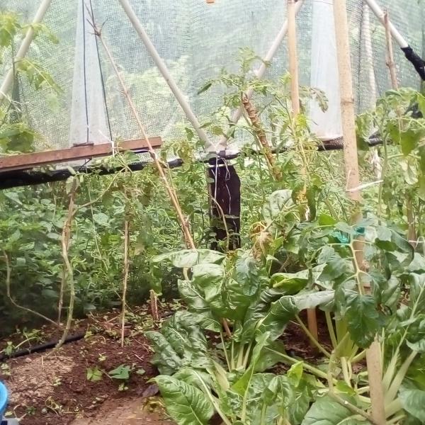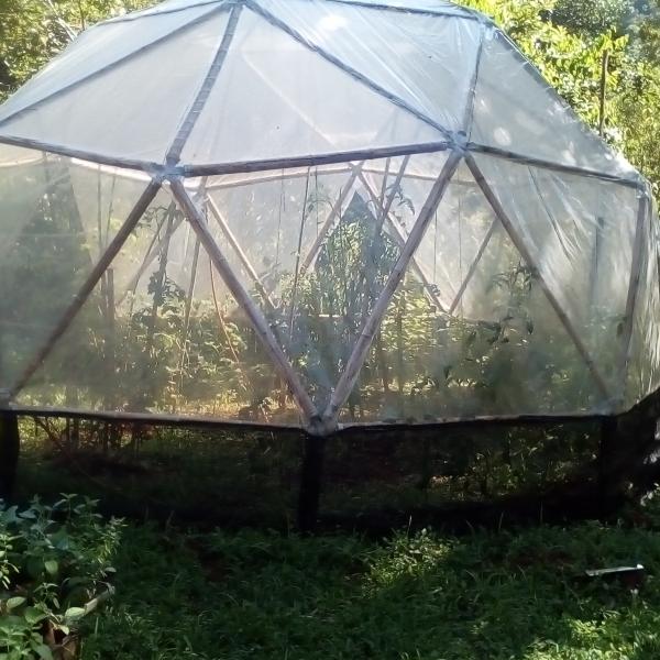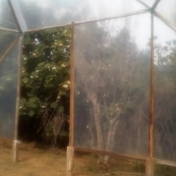 Diâmetro= 5/7 m. Bambu e filme estufa